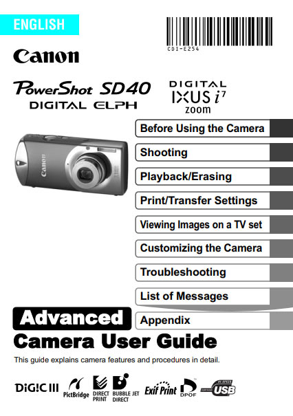 PowerShot-SD40-User-Manual-Advanced-Cover