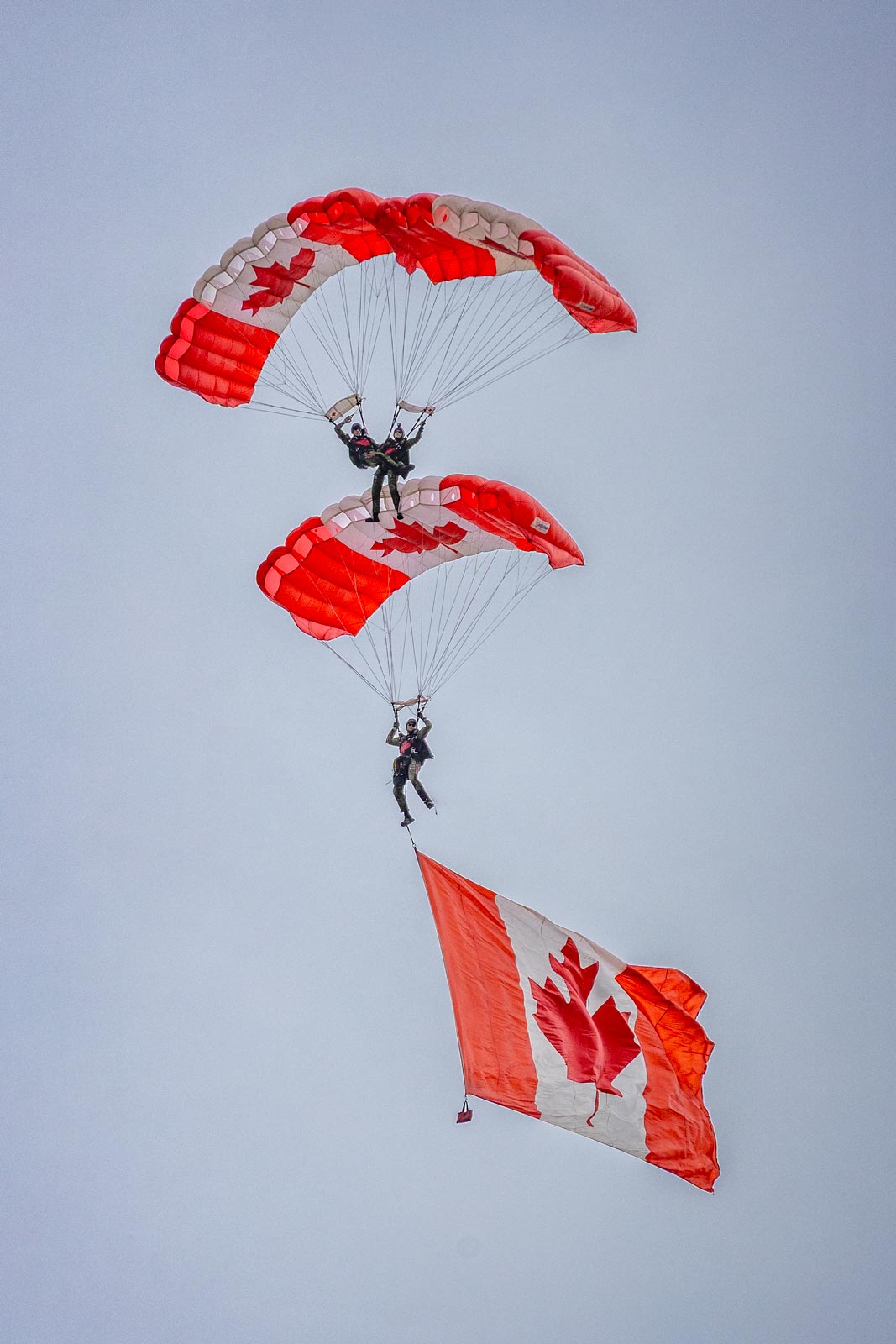 The flying display was opened by the Skyhawks, the Canadian Forces Parachute Team who descended doing stunts on the way down and carrying US and Canadian flags.