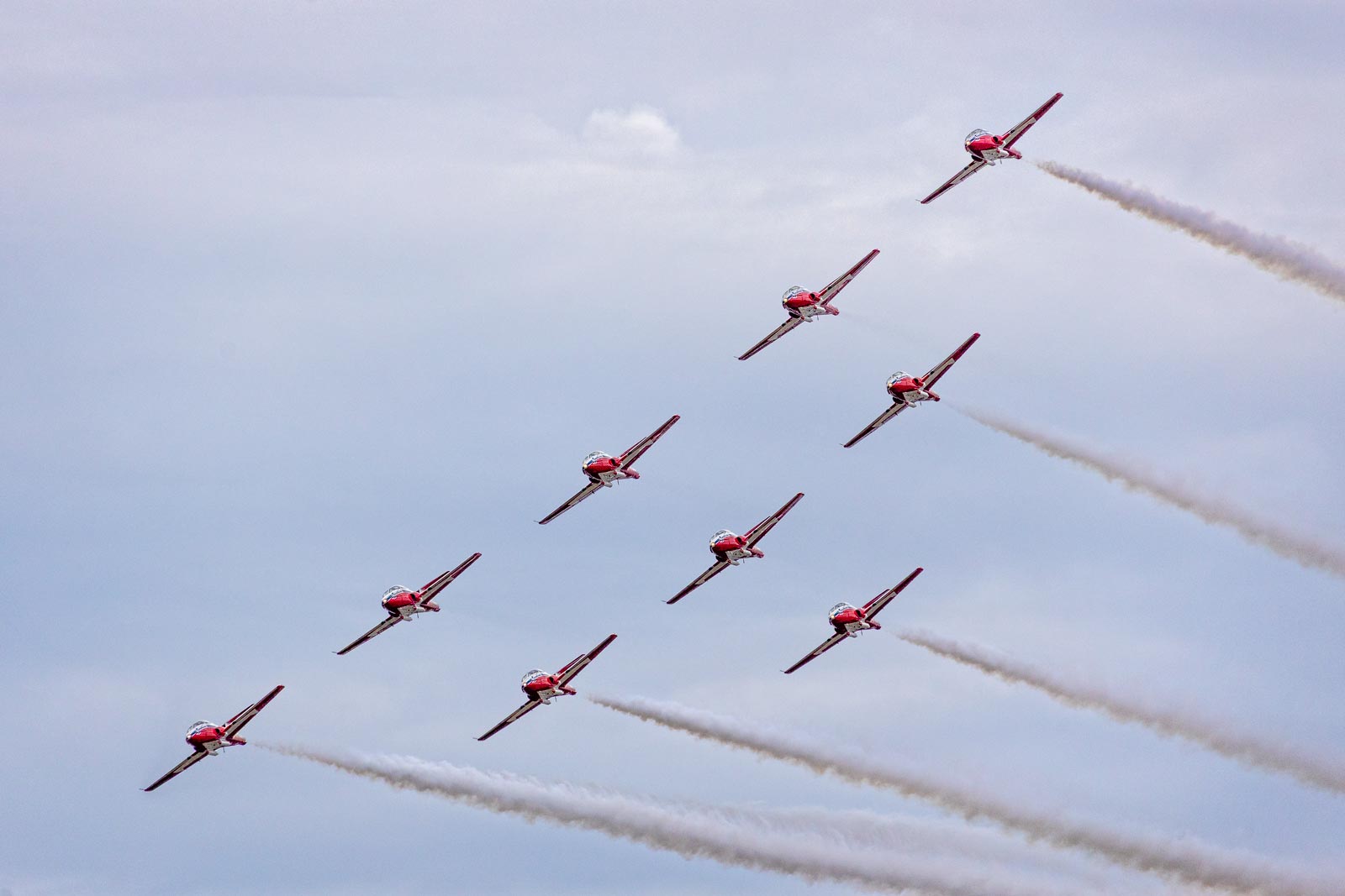 The Canadian Forces aerobatic team are The Snowbirds who put in an appearance. They fly Canadian made CT-114 Tutor training aircraft. Their precision Aerobatics are beautiful to see.