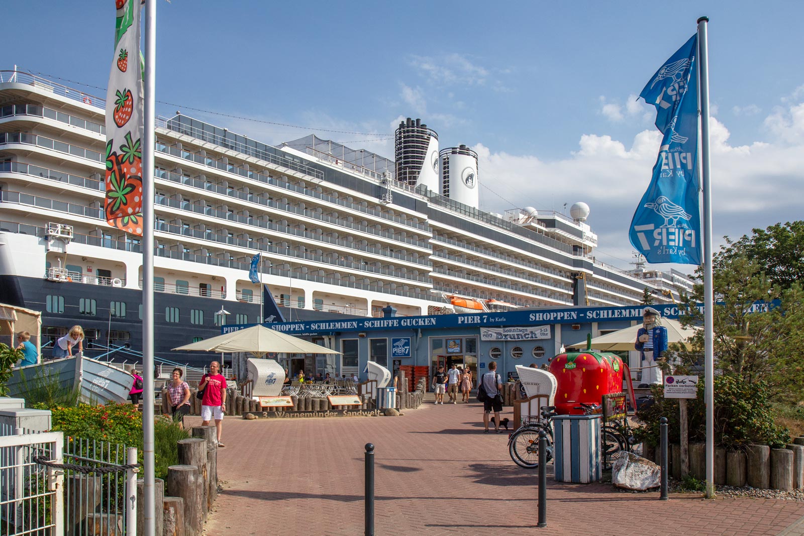 Buildings in Warneműnde were generally not more than a few stories high so that the Eurodam with more than thirteen decks towered above the city.
