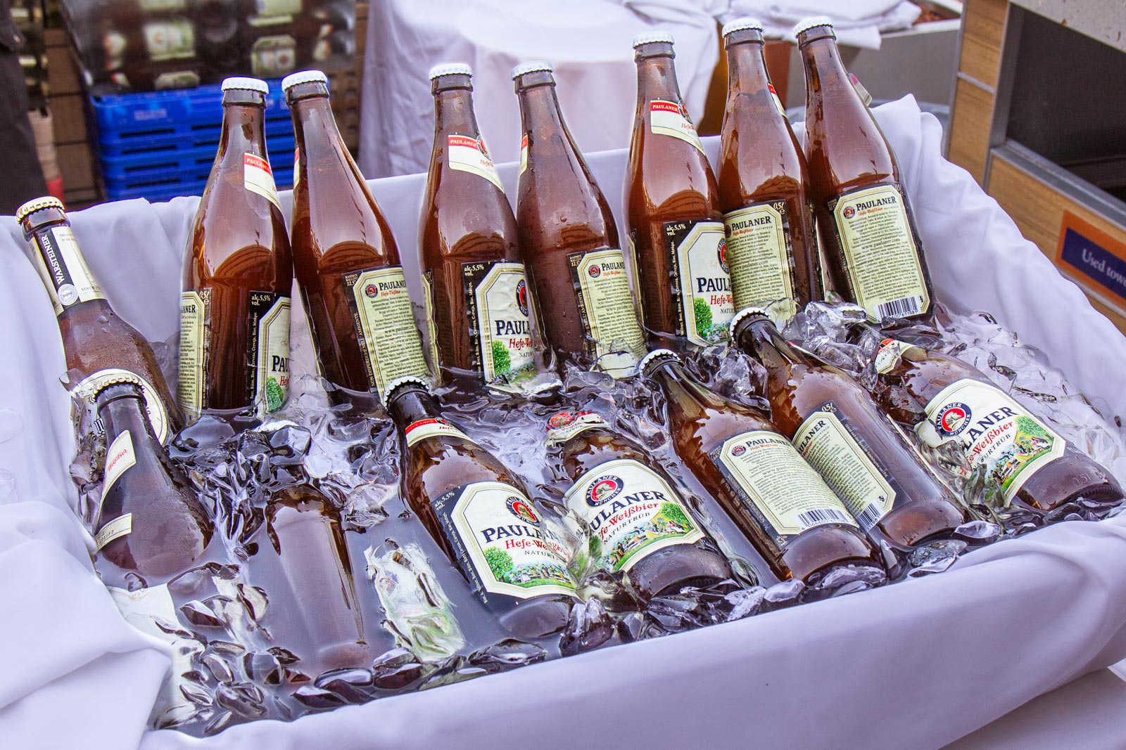 A display of bread for our German Beer Hall meal. Notice the pretzles! Much of this bread was sourced on shore from local bakeries. I had a pretzel which was just OK. But the whole wheat rye bread was fantastic. I loved it.