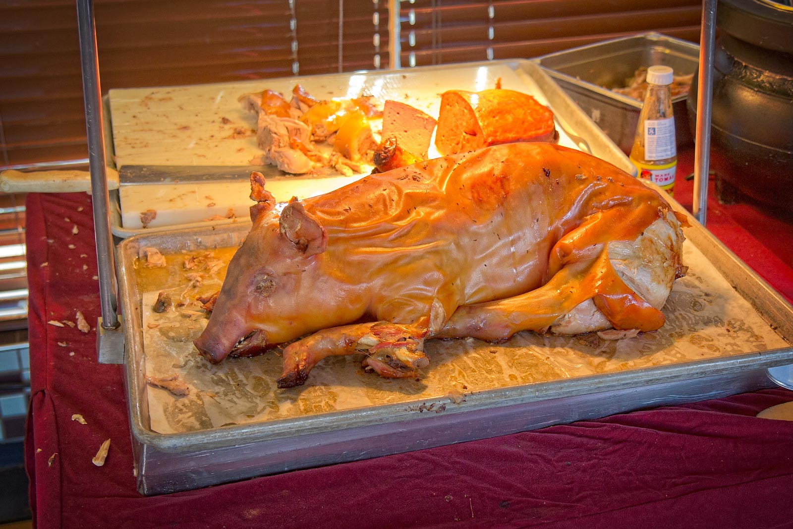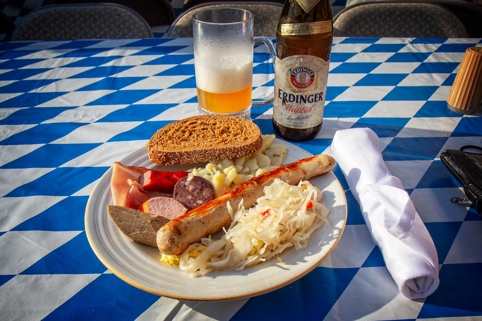 Look at this for diner! Potato salad, sauerkraut, sausage, suckling pig, great bread, and beer. It’s enough to make one want to be German!